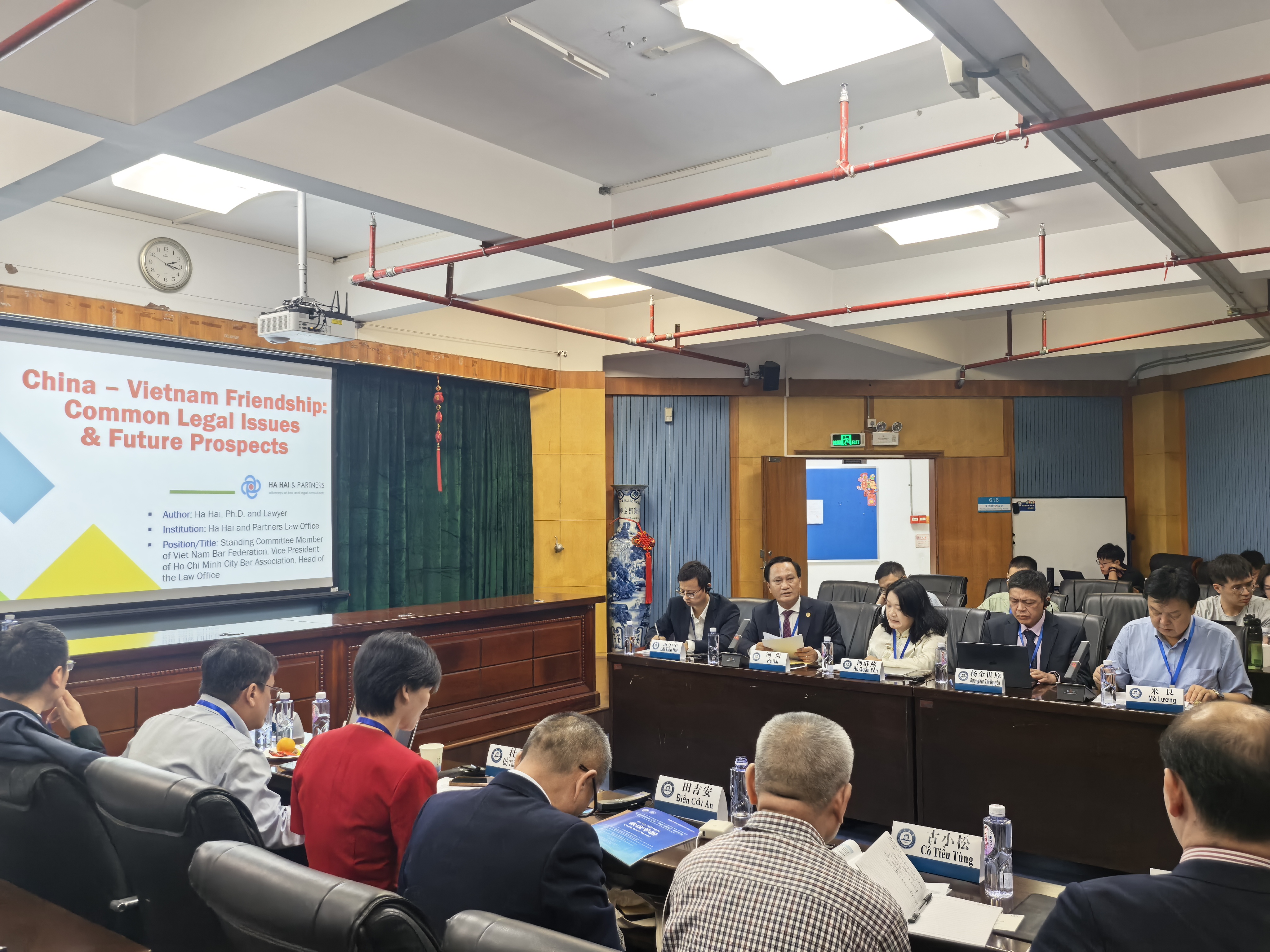 第二节的“司法合作与跨境治理”小组研讨聚焦中越经贸合作与人文交流中的法律问题和治理能力。越南胡志明市法学院法律语言学院院长陈升龙副教授指出,当前越南高校对中国法律的研究仍较为薄弱,通晓中文与越文、掌握两国法律知识的复合型人才严重短缺,亟须通过共建课程、联合培养和教材翻译等来推动越南高校对中国法律的教学与研究,从而为经贸合作提供坚实的法律保障。越南律师联合会常务委员、胡志明市律师协会副会长河海律师结合最新统计数据指出,中国已成为越南最重要的投资来源国之一,一批大型中资项目在基础设施、制造业和能源等领域快速发展,同时也伴随着利用“名义股东”规避市场准入和原产地规则等的合规风险,引发所有权纠纷和法律责任争议。他呼吁中越进一步加强律师协会和法律机构合作,在越建立面向外国(特别是中国)律师的系统培训项目,培养熟悉越南法律、具备双语能力的“桥梁律师”,用更专业的法律服务支持双边经贸合作。孙德胜大学副教授、越康士律师事务所律师武智好从越南兼具儒家—佛教文化传统、法兰西与苏俄大陆法影响以及美式普通法要素在内的复合法律传统出发,梳理了中国的党和国家体制、乡村与宗族组织、户口制度、国有企业和网络空间治理等方面的经验在当代越南宪法、土地法、民法和网络安全立法中的体现与变迁,指出这既是构成两国法律制度相似性的基础,也使越南在推进“法权国家”建设、强化产权与企业家地位、应对科技竞争和气候变化等方面面临新的调整压力。越南《法律与发展杂志》主编范文林根据中越边境地区司法合作实践,认为应当建立跨境司法数据互通中心、边境调解仲裁机构和联合调查队,以适应贸易规模扩大带来的司法协作需求。上海锦天城律师事务所田吉安律师认为可以通过律师协同机制、国际仲裁机制等,加强对跨境经贸投资的全周期法律护航,提升中越命运共同体建设的法治含量。暨南大学廖幸谬教授则提炼了理解中越关系历史、现状和未来的六个关键词:社会主义、民族国家、区域主义、全球化、逆全球化和命运共同体,认为中越未来应加强司法交流和跨境治理领域的合作。
